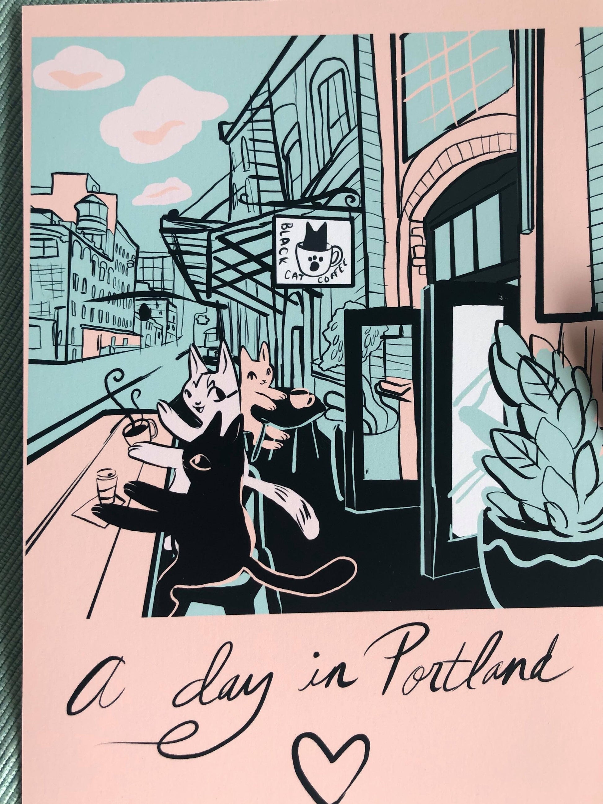 Started doing an on going series called "a day in" city cats. This series includes San francisco, Portland, Seattle and Japan(not a city but a street in Japan!)