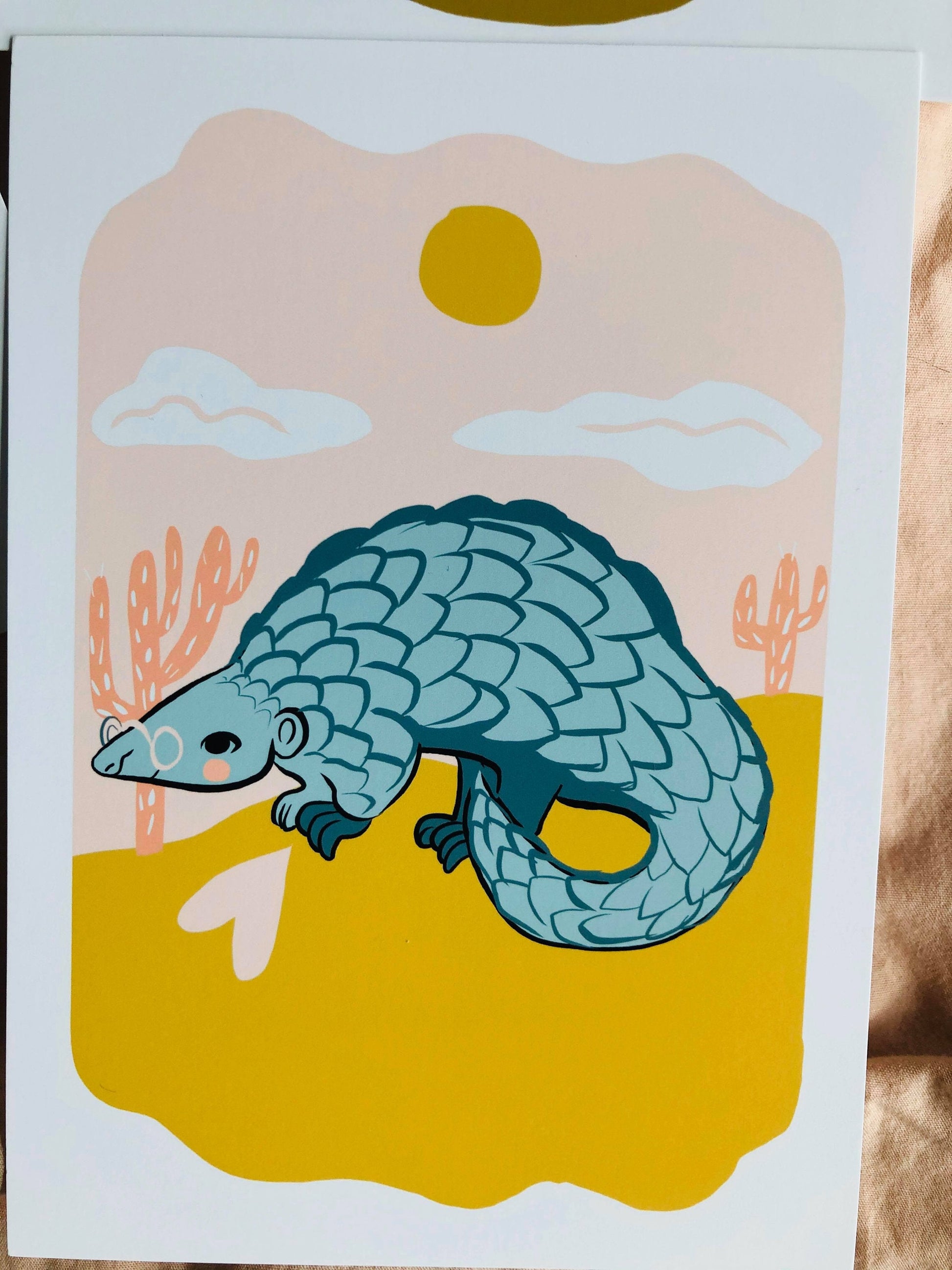 This little series of prints includes a baking lovely cat, a polyphemus moth cat and a pangolin wearing pince-nez!