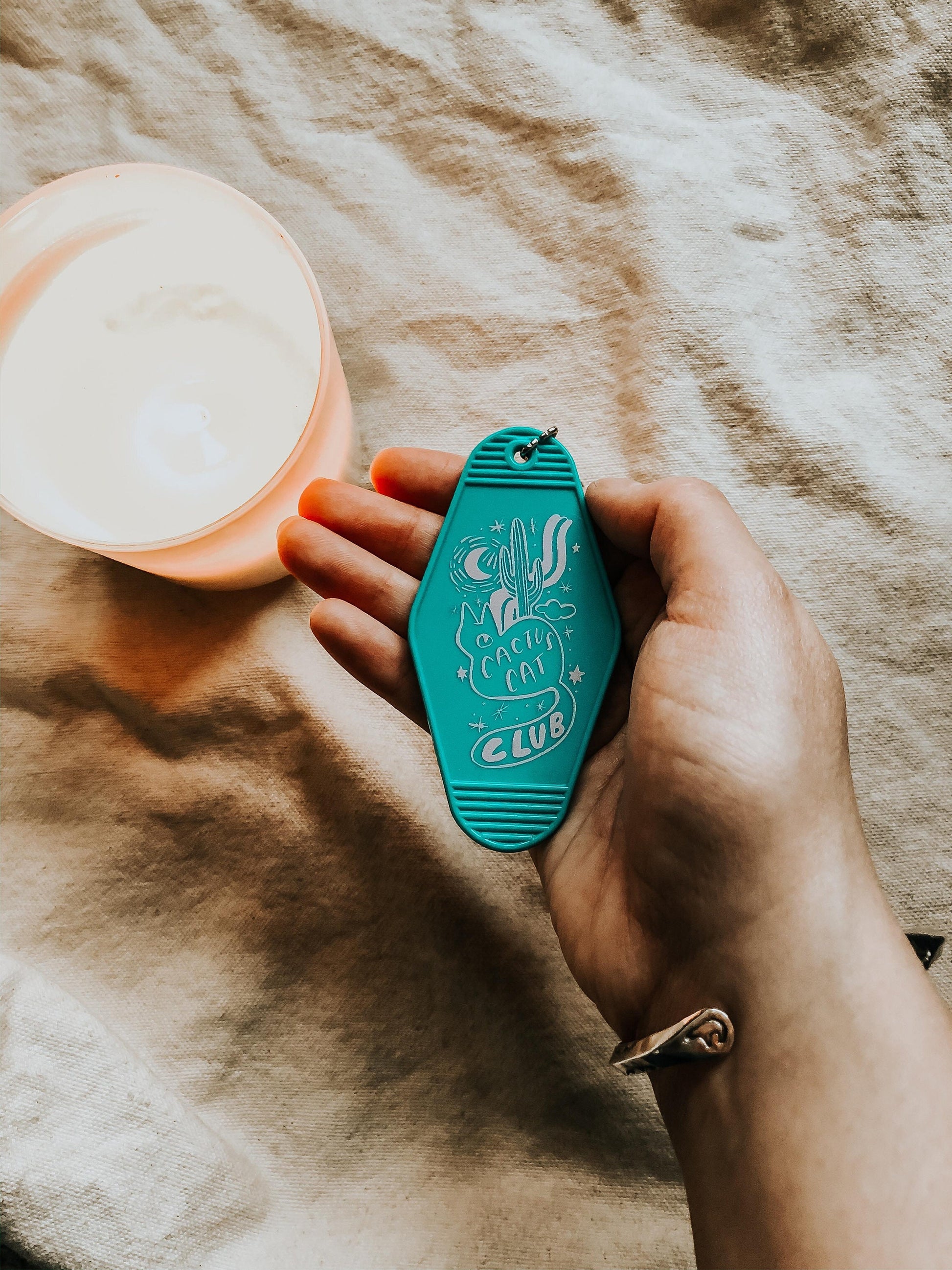 This design is all about loving cats, cactus and the desert in general. I'm a desert mama right after I'm a cat mama. I imagine like imagine this is a cool lounge in the city of palm springs. Or a divey little spot in old town las vegas with a pool and endless whiskey. Thats just me though. It's whatever sort of club you want it to be. Inspired by neon lights, giant saguaros and the cute cats I live with.