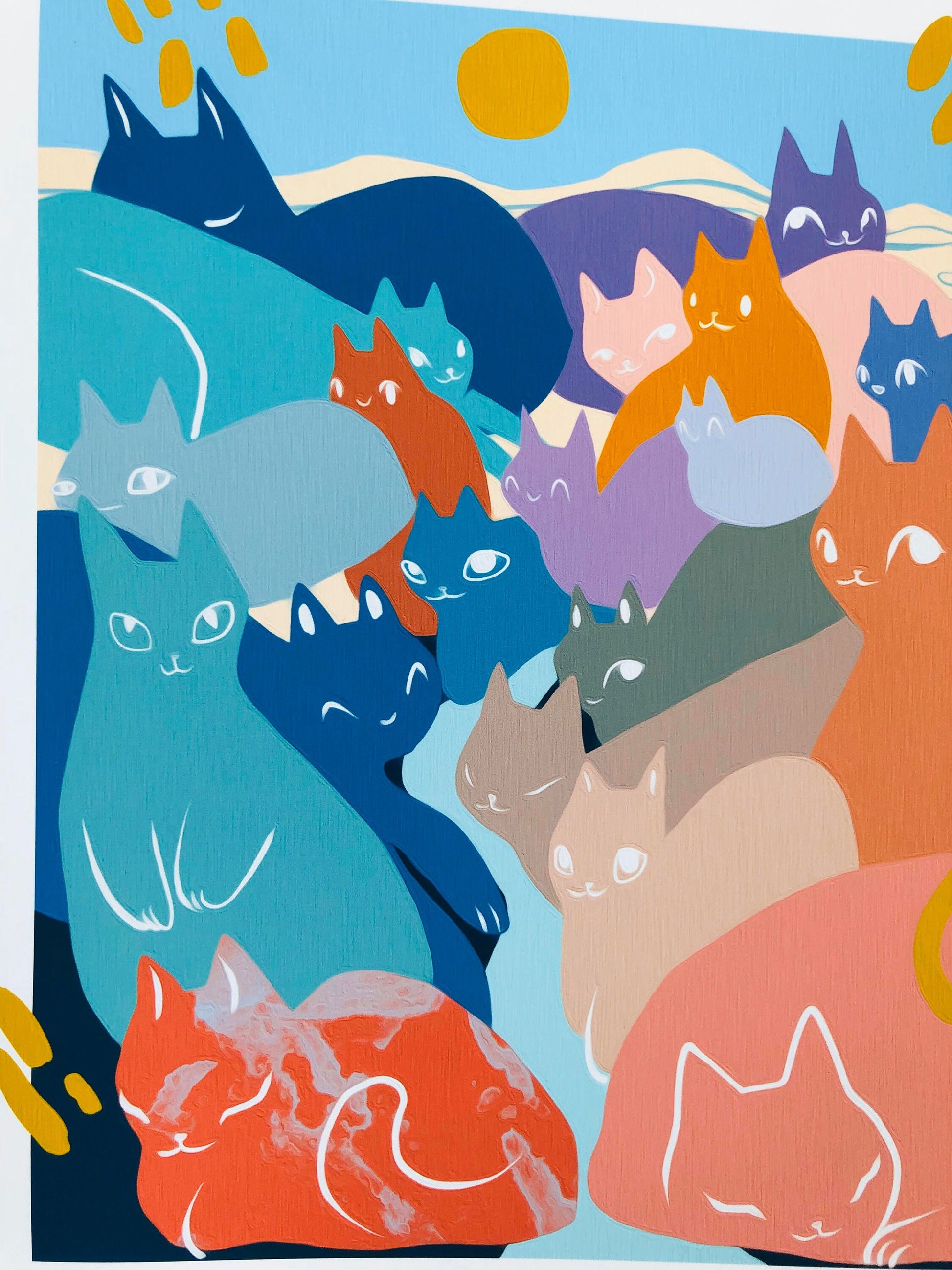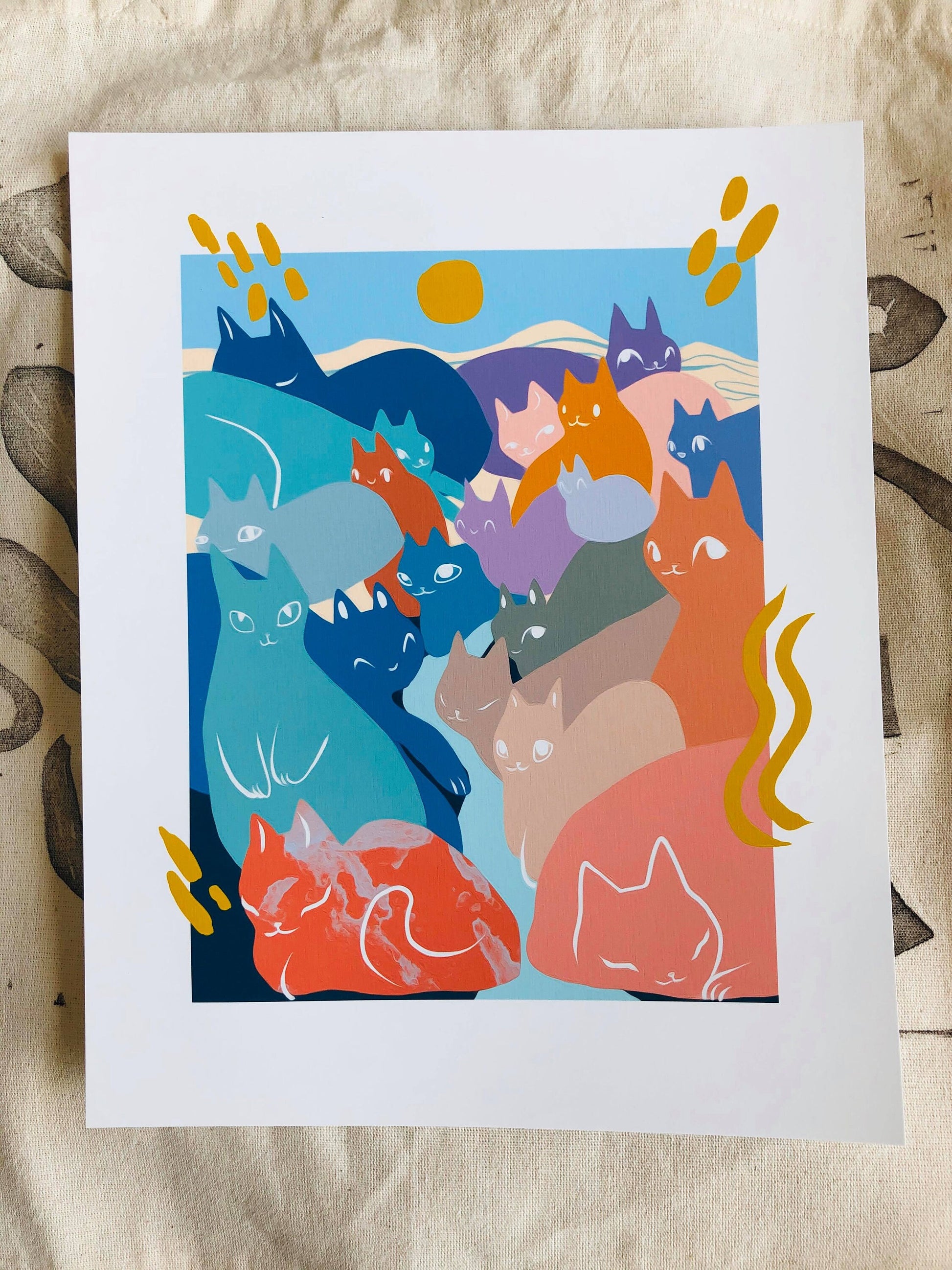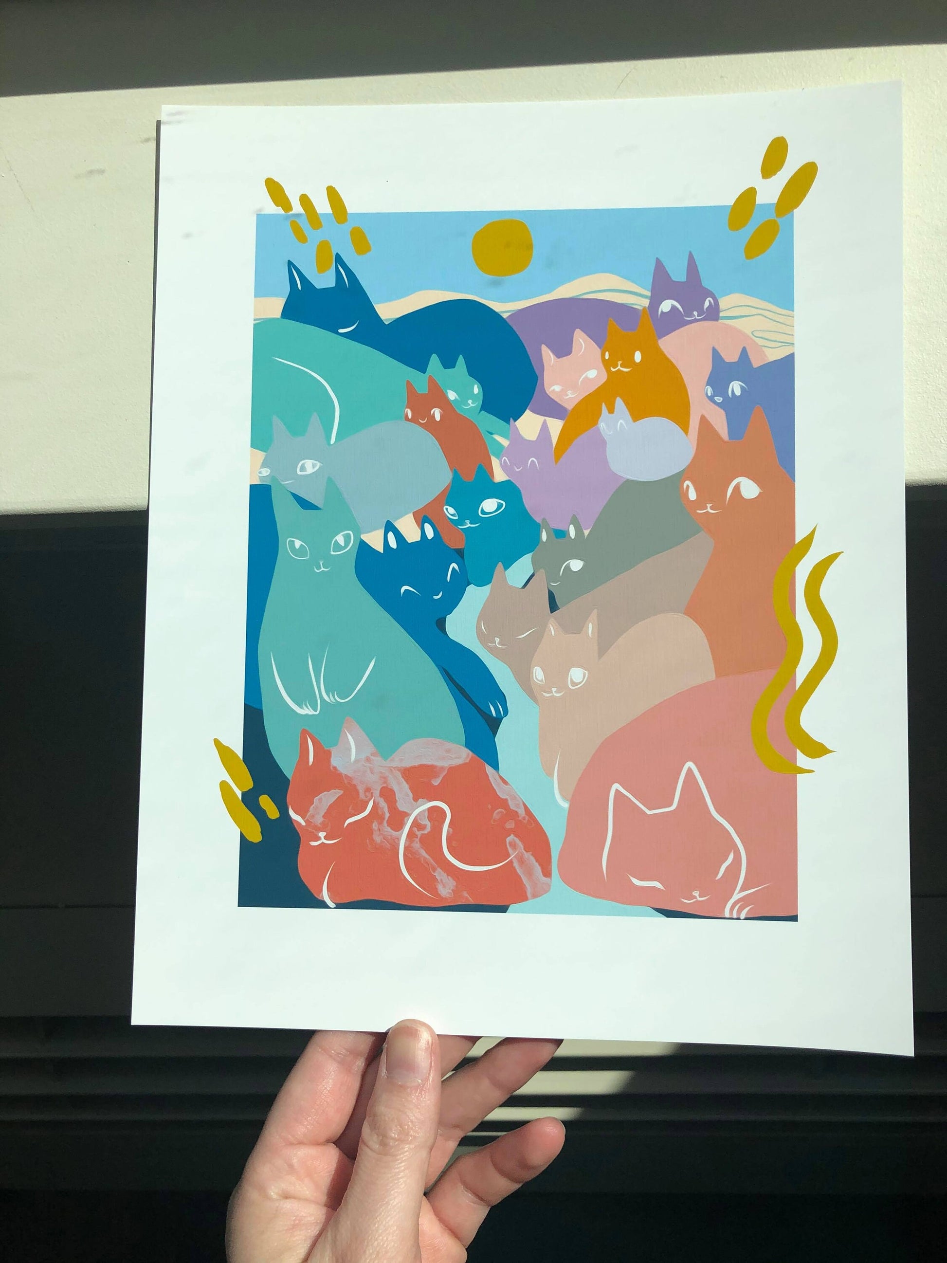 I did a couple of prints in the last week as a way to brighten my day and hopefully yours. One of my favorite places in the world is death valley california. One of my favorite spots within that valley is the Artist's Palette. I wanted to re-imagine that space as all cats of different colors. also I adore David Byrne and the talking heads. My husband and I danced to Naive Melody for our first dance at our wedding. so here you go! two colorful large 8x10 prints for your home!