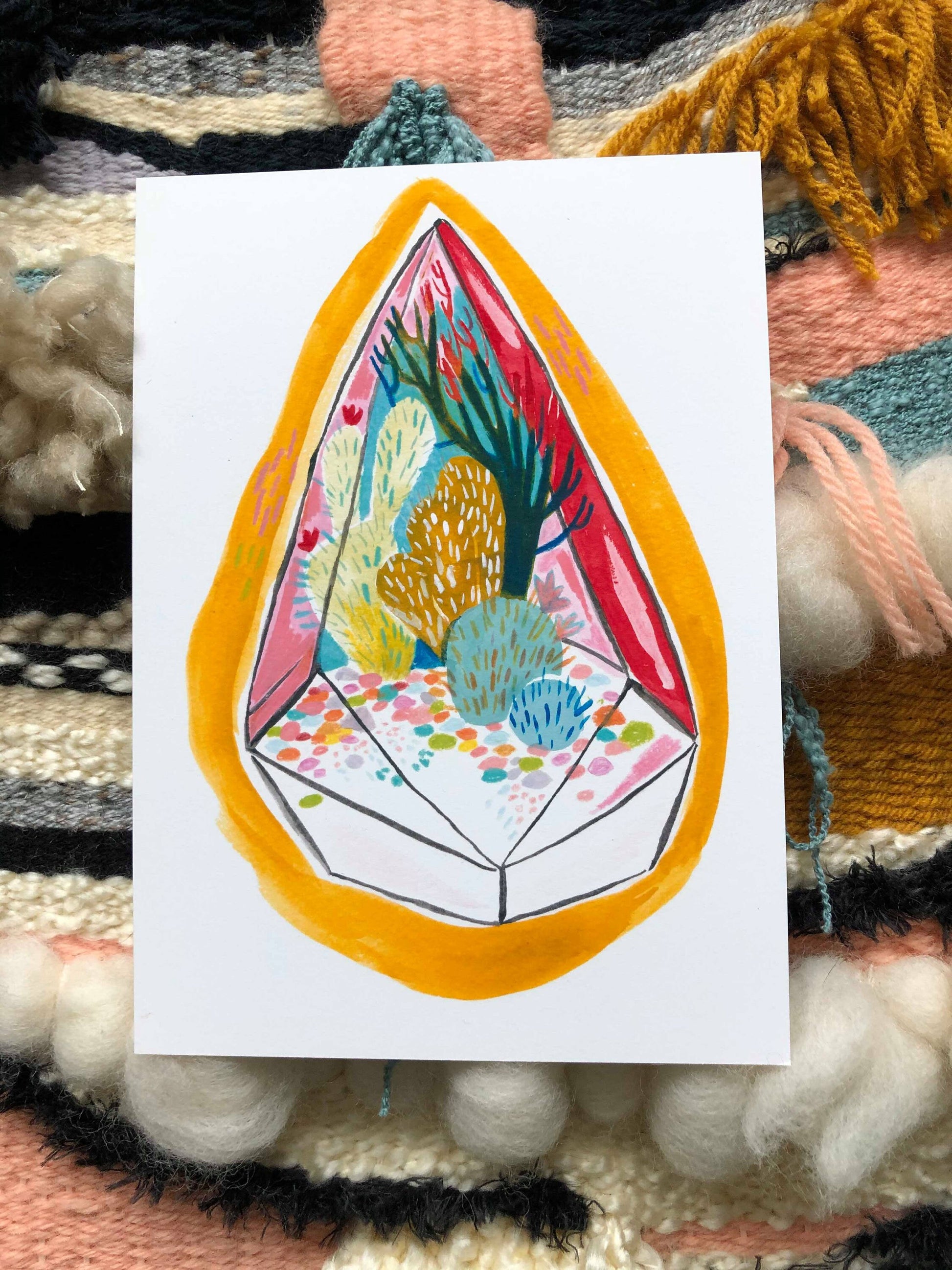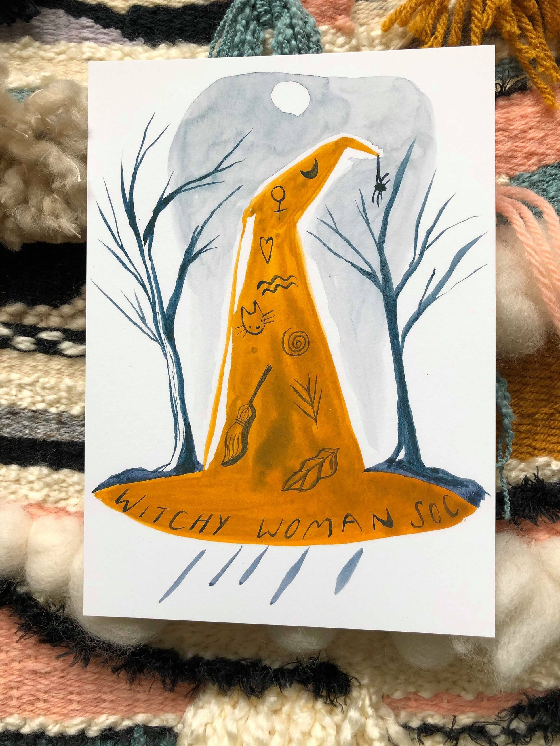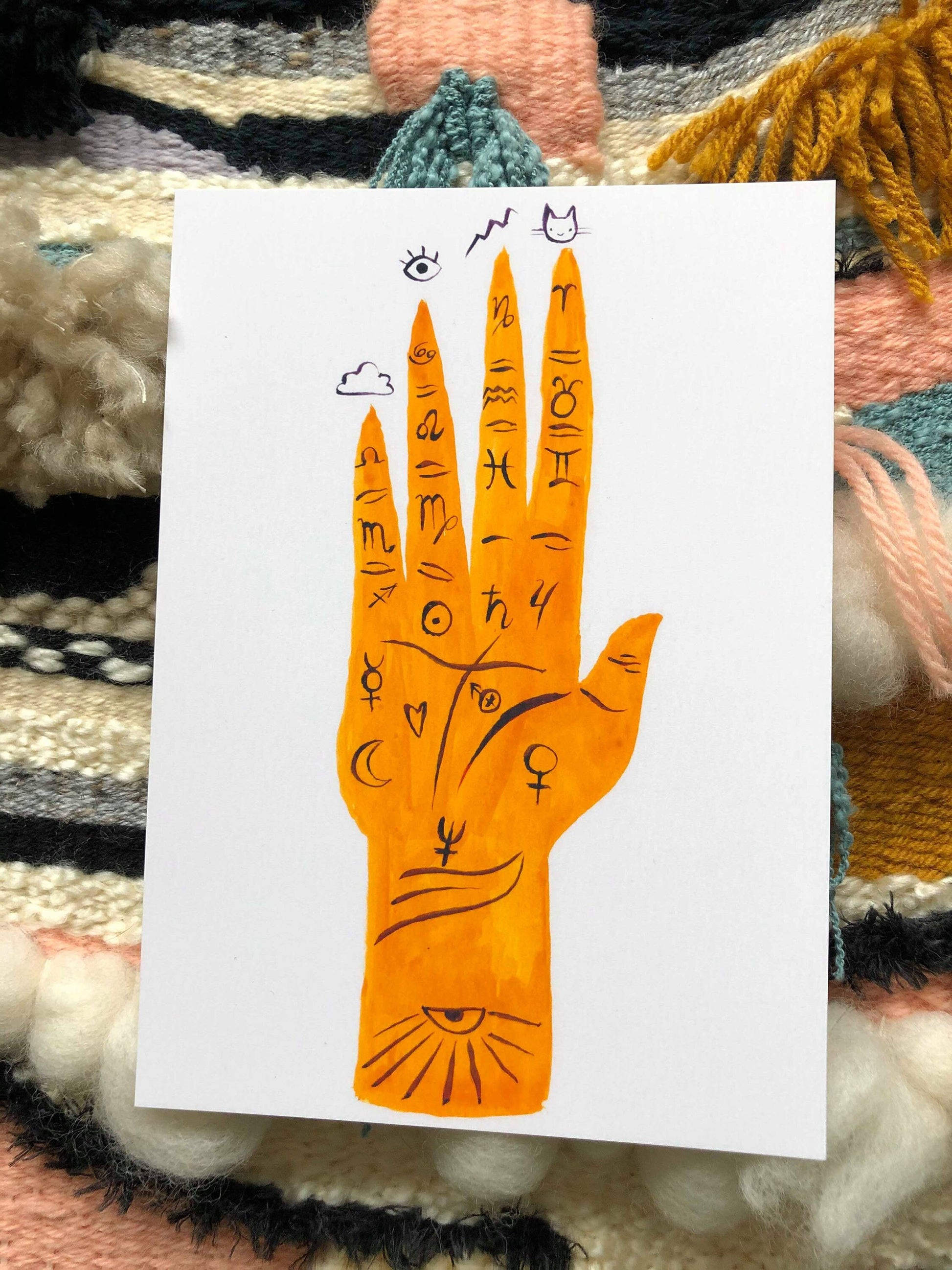subject: some non cat related inktober prompt prints, palmistry hands, witches hats and cactus terrarium!