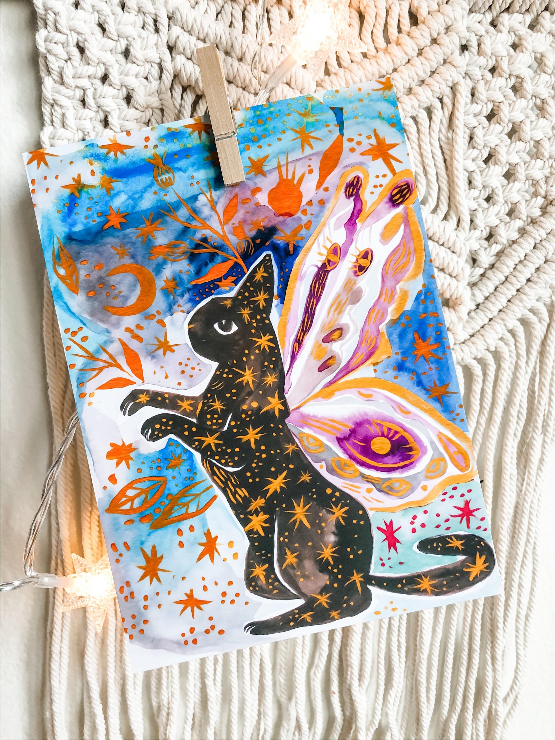 After I made the first Luna Moth Cat goddess I started making a second series! Some of these originals are still for sale. Contact me if you are interested in any of the original pieces.