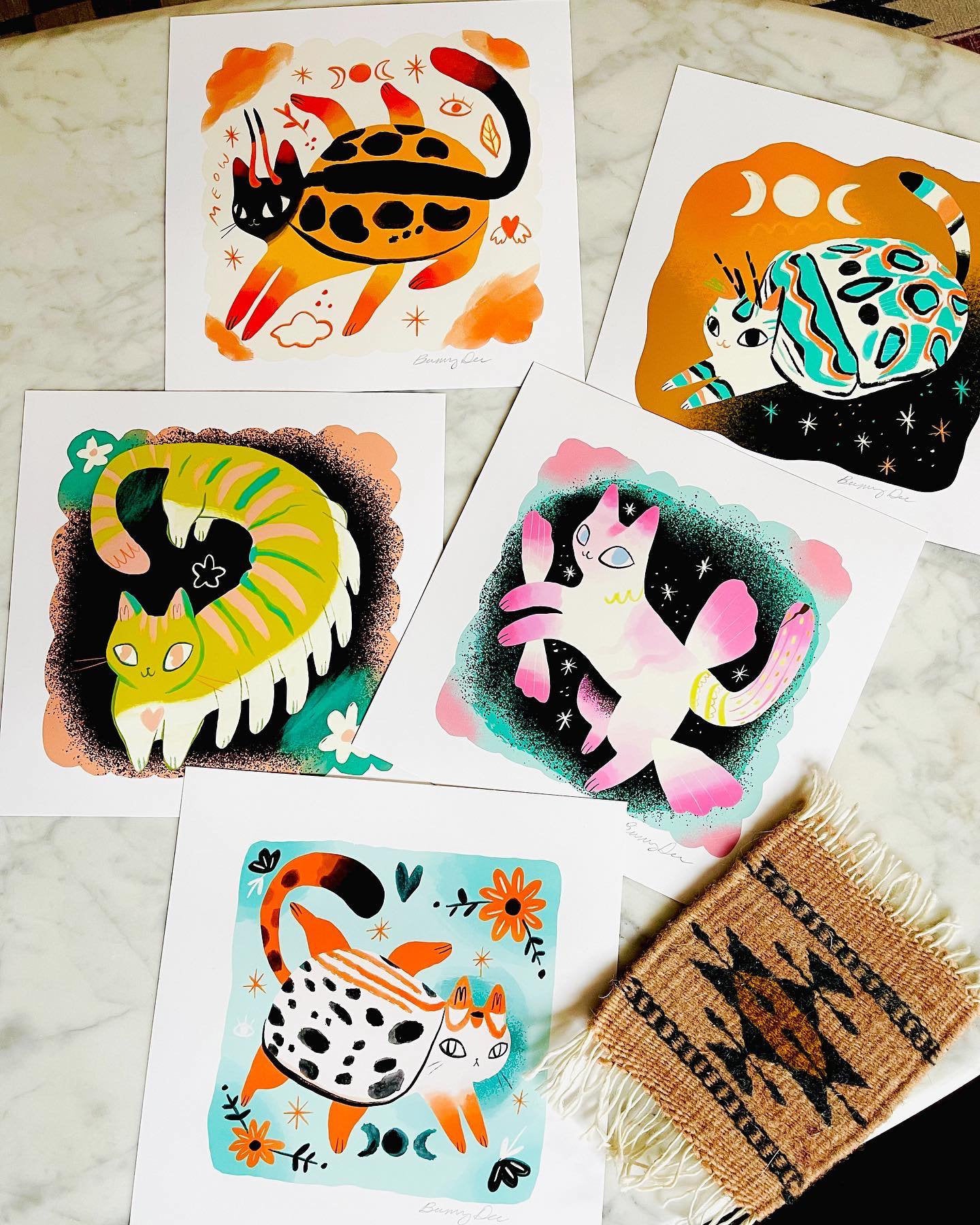 The bug cats are finally here as prints since I got a printer that does 8x8 sheets! There are 5 different cat bug designs so far so pick your favorite from all the listings or drop down in one of the listings to get all 5 prints for 80.00 which is like getting a print for free!