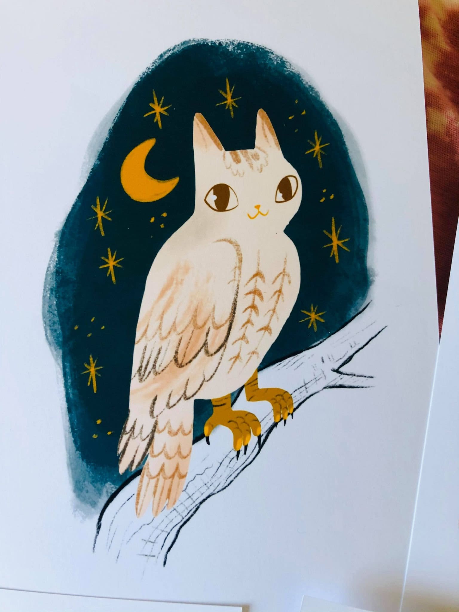Some of the cat birds that I drew in procreate are finally up for sale as prints!