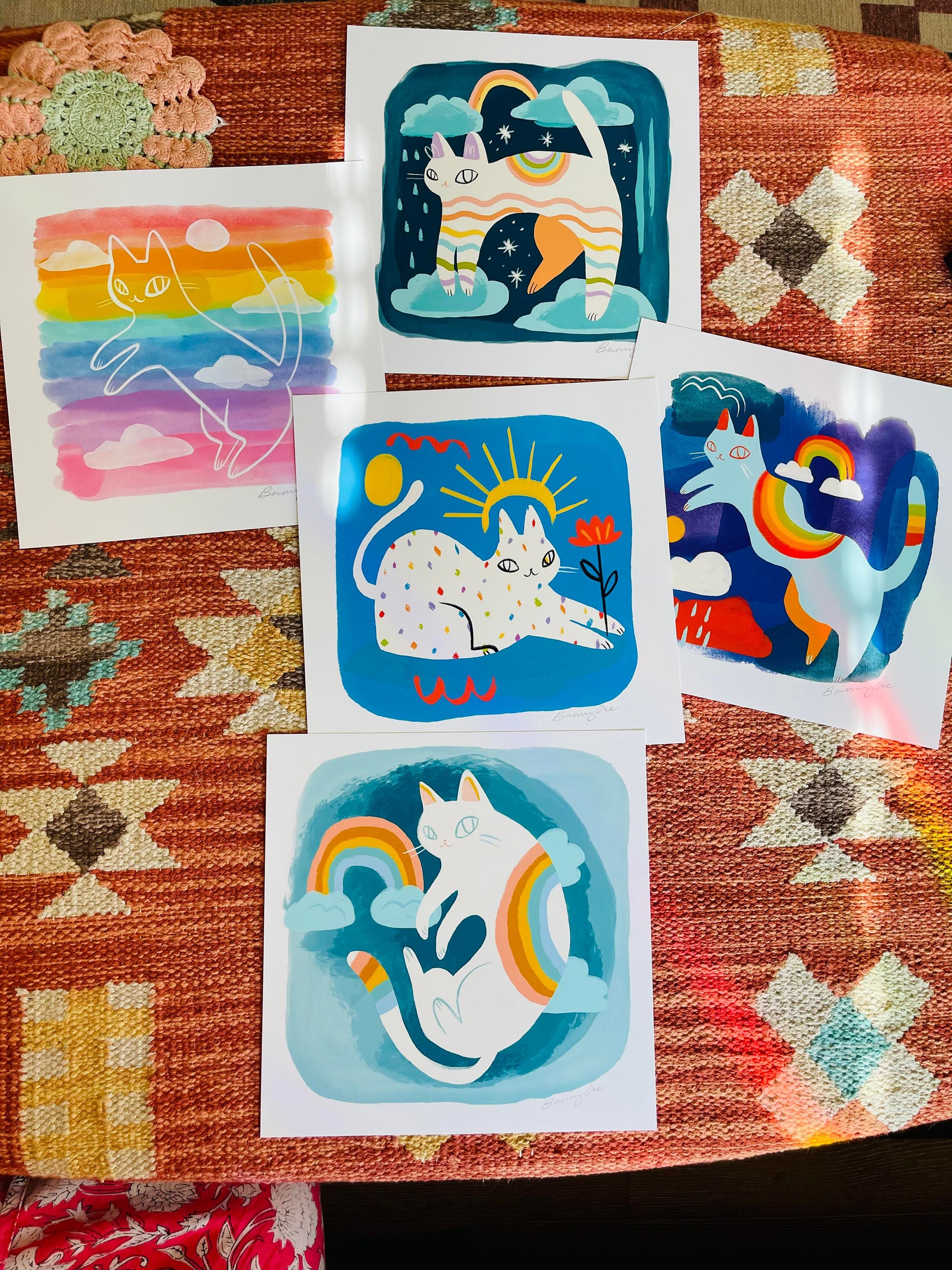 The rainbow cats are finally up in print form! I am so excited to have all these cuties in the shop!